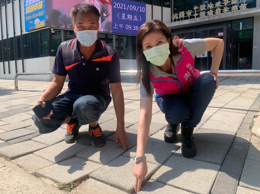 民眾向市議員謝美英反映,過嶺市民活動中心甫風光開幕,如今門面掉漆,門把生鏽,植裁枯萎,地磚不平,路燈傾斜,數月以來未見相關單位修復。