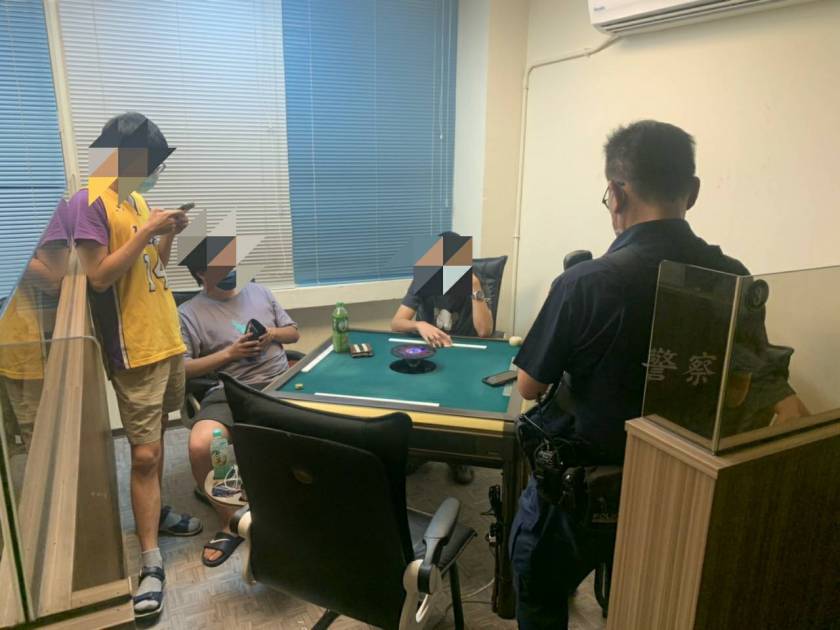 桃園警察分局景福派出所11日21時許,接獲民眾舉報,表示某停業中的麻將會館有人員進出,疑似違規復業,所長吳政哲立即率員警前往稽查。
