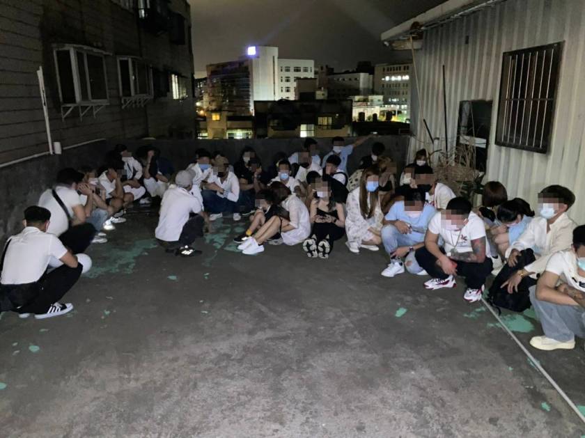 原來他們聽到員警敲門稽查,前後門又都被守住,只好跑上頂樓躲藏,清點現場共有102人(員工4人、客人98人),其中查獲伍姓及黃姓(失聯中均為男性)及伍姓(逾期居留、女)等三名移工,依規定移送桃園專勤隊收容,另店家容留人數超過百人已明顯違反防疫規定,員警現場製作紀錄表,移請相關單位裁處。