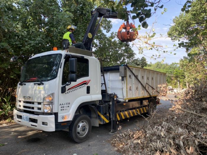 環保局長呂理德表示,桃園市各區清潔隊員於颱風來襲期間,雖適逢星期天例假日,仍犧牲假期值班出勤,處理各項可能影響交通安全的廢棄物,隔日一早亦以最快速度回復市容整潔,初步統計13日一個上午就清出約36噸的傾倒路樹、掉落招牌及垃圾。環保局長呂理德對於各區清潔隊員們在災害期間,執行各區公所應變處置各項環境整理工作表示肯定,風災過境迅速清理家園環境,協助市民朋友趕緊恢復正常生活。