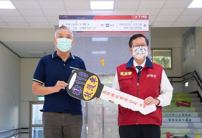 桃園市長鄭文燦13日上午前往桃園區,出席「藤輝機械有限公司捐贈桃園市政府消防局救護車典禮」。鄭市長感謝藤輝機械黃吉藤董事長家族捐贈1輛救護車給茄苳分隊,協助充實茄苳分隊緊急救護能力,共同守護八德鄉親生命安全。