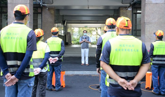 環保局長呂理德表示,接獲北科附工學生確診後,連夜火速安排防疫消毒13員、2台消毒砲車及6部背負式消毒機校園內外環境大清消;為阻絕社區防疫破口,鄭文燦市長要環保局先對校園週邊區域,包含桃園區三民,萬壽,成功,東門,東山里以及龜山區中興,山德里等7里執行擴大消毒;緊接著7日展開長榮大樓附近的南崁里及南榮里公共環境大消毒;為了讓在地居民放心,公共場所足跡熱點總能看見消毒隊員們的手從未停歇。