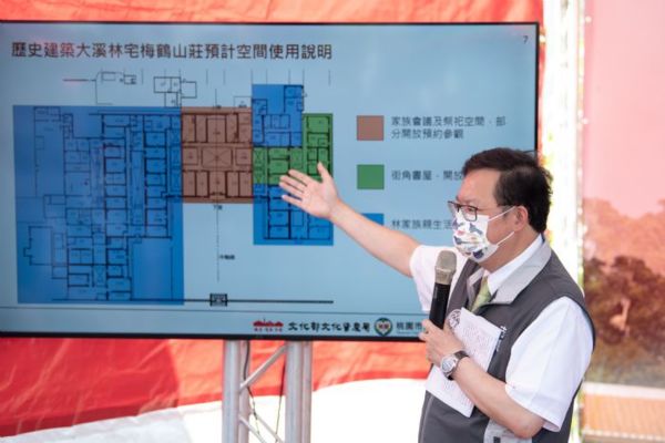 桃園市長鄭文燦18日上午前往大溪區,視察「歷史建築大溪林宅梅鶴山莊第二、三期修復工程竣工」。鄭市長表示,市府為保存「梅鶴山莊」歷史建物風貌,規劃4期修復計畫,至今已完成前3期工程,今日視察完工的第2、3期修復工程,以左、右內外護龍為主,進行傳統屋面、白灰牆身及木作門窗等修復作業,未來持續爭取中央經費推動第4期修復工程,並開放「街角書屋」及部分空間供民眾預約參觀,透過建物縮影更加瞭解大溪及頭寮地區的開發史,未來也能串連周圍交通及景點,成為北橫國家風景區計劃重要的旅遊亮點。