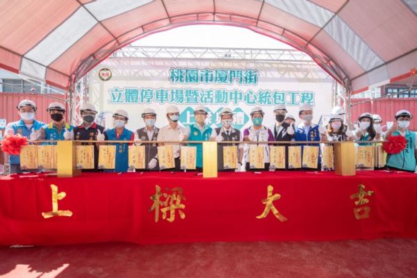桃園市長鄭文燦30日上午前往桃園區,出席「廈門街立體停車場暨活動中心統包工程上梁典禮」。鄭市長表示,「廈門街立體停車場暨活動中心統包工程」位於市政府行政園區及舊司法園區中間節點,市府以總經費6.87億元,其中前瞻計畫補助1.11億元,興建地下1層、地上8層多目標立體停車場,總樓地板面積約5,391坪,規劃1樓約250坪空間,設置中正、光興里聯合市民活動中心;1、2樓部分空間引進複合式商場進駐;7、8樓作為市府交通局辦公廳舍,而B1、2至6樓規劃立體停車場,可提供汽車位247席、機車54席,預計明(111)年6月完工,對行政園區交通及停車需求有很大助益。