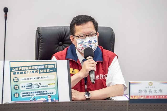 鄭市長提到,市府推出桃園市民限定的「電動機車easy購方案」廣受討論,使用桃園好市乘雙券或振興五倍券5,000元購買桃園電動機車,採「汰舊換新方案」可讓5,000元變2萬1,000元,採「新購電動機車方案」可讓5,000元變1萬6,000元,加計中央及桃園加碼補助後,汰舊換新最高可補助2萬6,000元,新購電動機車最高補助1萬8,000元,限量9,000個名額,適用對象為年滿18歲且設籍桃園市滿1年,且未申請環保署補助者,市府也規劃邀請桃園電動機車業者再加碼優惠,邀請市民朋友從今日起盡快來登記,輕鬆買電動機車。