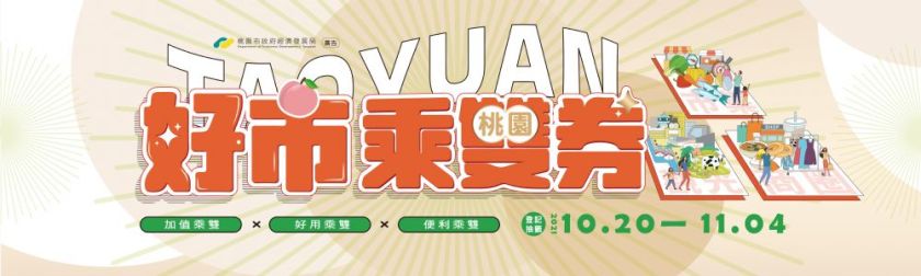 「桃園好市乘雙券」活動官網(https://taoyuandoublepon.tycg.gov.tw)(18)日上線同步開放合作店家先行上網登錄,另訂於10月20日上午9點開放民眾登記,登記期間為期2週,至11月4日截止,預計於11月5日進行抽籤。
