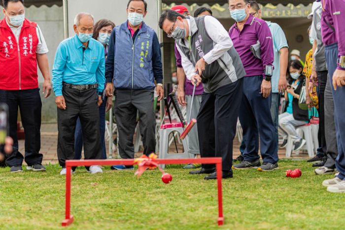 桃園市長鄭文燦(20)日下午前往桃園區,出席「建新公園槌球場改善工程啟用典禮」。鄭市長表示,長者的健康照護不是只有醫療,市府也鼓勵長者進行體適能及長青活動,因此,不易產生運動傷害的槌球,可說是長者的最佳運動之一,也鼓勵長者們進行小型比賽,互相交流切磋球技;而桃園區建新公園是「共融式樂齡公園」,除了設置兒童遊具、籃球場等遊樂設施,為推廣並發展槌球運動,由桃園區公所進行建新公園既有槌球場改善工程,總面積756坪,施工經費216萬元,共新增5座槌球場,期盼公園草坪的活化利用提供社區居民更優質的運動及活動空間,讓槌球運動發展得更好,將桃園打造為高齡友善城市。