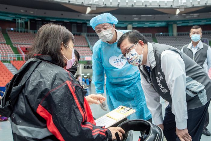 桃園市長鄭文燦(22)日上午前往桃園巨蛋體育館,視察疫苗接種站運作情形。鄭市長表示,今日是第12-1期疫苗接種首日,將連續2日施打BNT疫苗第一劑,第二劑施打期程則會由指揮中心公告,桃園會按照期程安排。鄭市長說,第12期接種計劃分2階段,社區接種站除今、明兩日BNT疫苗接種外,10月25至26日將進行本市65至67歲長者莫德納疫苗第二劑接種;10月27日進行AZ疫苗接種;10月29日至30日進行BNT疫苗接種;11月2日則將施打AZ疫苗接種,一共施打8日,預計12期開放量能施打總數為46萬1,863劑。