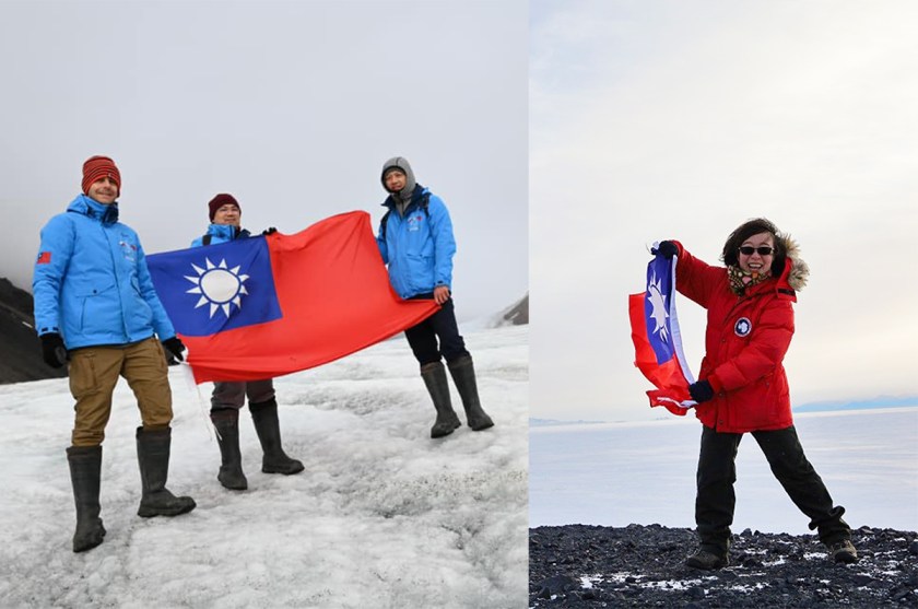 兩組科學家深入極地研究,不約而同在南北極插上中華民國國旗。照片林映岑助理教授、郭陳澔教授提供