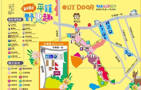 平鎮警分局分局長黃富村表示,2021桃園花彩節「Hello野球趣」活動,現場搭配多樣花區圖騰、色彩繽紛萬花筒、比人高的巨型向日葵迷宮、媲美日本富良野的景色及充滿棒球元素的圖騰,讓每位賞花的民眾在悠遊花田也能感受平鎮之;。另為求花彩活動盡善盡美,分局各單位執勤人員將落實各項交通疏導管制勤務及為民服務工作。
