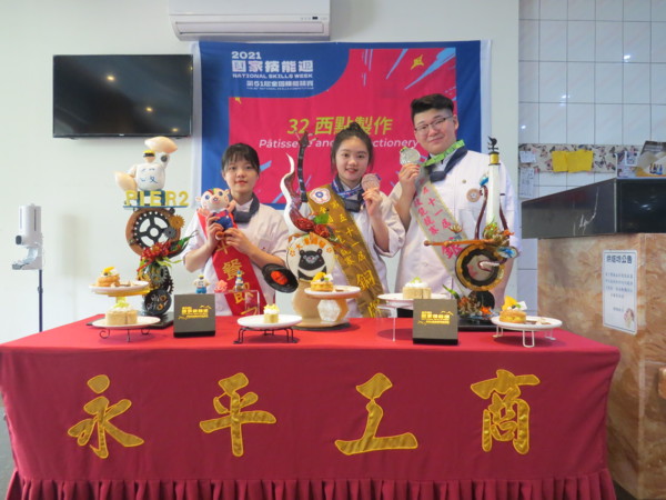 今年第51屆全國技能競賽,本屆競賽主軸設定為「好膽來技較!」,期待選手以技能相互較量、勇於以專業技能較勁挑戰。因應疫情關係,採全國分地、各職類分流擇期辦理。永平工商餐飲科參與本次全國技能競賽榮獲佳績,西點製作職類更是繳出所有選手獲獎全壘打的好成績,分別榮獲全國第二名、第三名及第五名,打破紀錄、大獲全勝;餐飲服務青年組榮獲全國第二名,完成全國賽二連霸,餐飲服務青少年組也榮獲全國第四名的好成績。