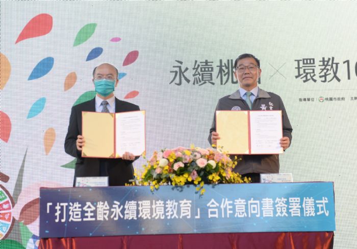 秘書長黃治峰表示,環境教育法實施滿10周年,桃園對於環境教育的推廣不曾停歇,在地整合產、官、學、研及民間團體等跨界資源,合力推動桃園環境教育,並在公私協力推動下從桃園升格前的7處環境教育設施場所,至今共有28處環境教育設施場所通過認證,為全台之冠;在國際舞台上參與國際韌性城市會議及聯合國國際氣候大會,建立多元的環境教育夥伴關係。長期以來關注環境議題,在兼顧經濟發展的同時,以永續發展思維,強調循環經濟與節能減碳,包括綠色產業、綠色運輸、綠色空間、綠色能源、綠色採購等政策,打造智慧韌性、安居樂業的城市,並推動環境教育扎根,拓展群眾對於桃園環教資源的認識,化被動為主動,形塑具環境意識的公民參與。活動中並與日月光環保永續基金會簽訂「打造全齡永續環境教育合作意向書」,並由汪渡村執行長代表日月光集團捐贈5,700萬元,協助市府推動學齡前兒童環教園區、石門水庫環境教育巡禮、里海數位樂學、水環境巡護暨環境教育推廣、海岸及海洋環境維護等五大計畫,善盡企業社會責任,深化對環保公益的承諾。
