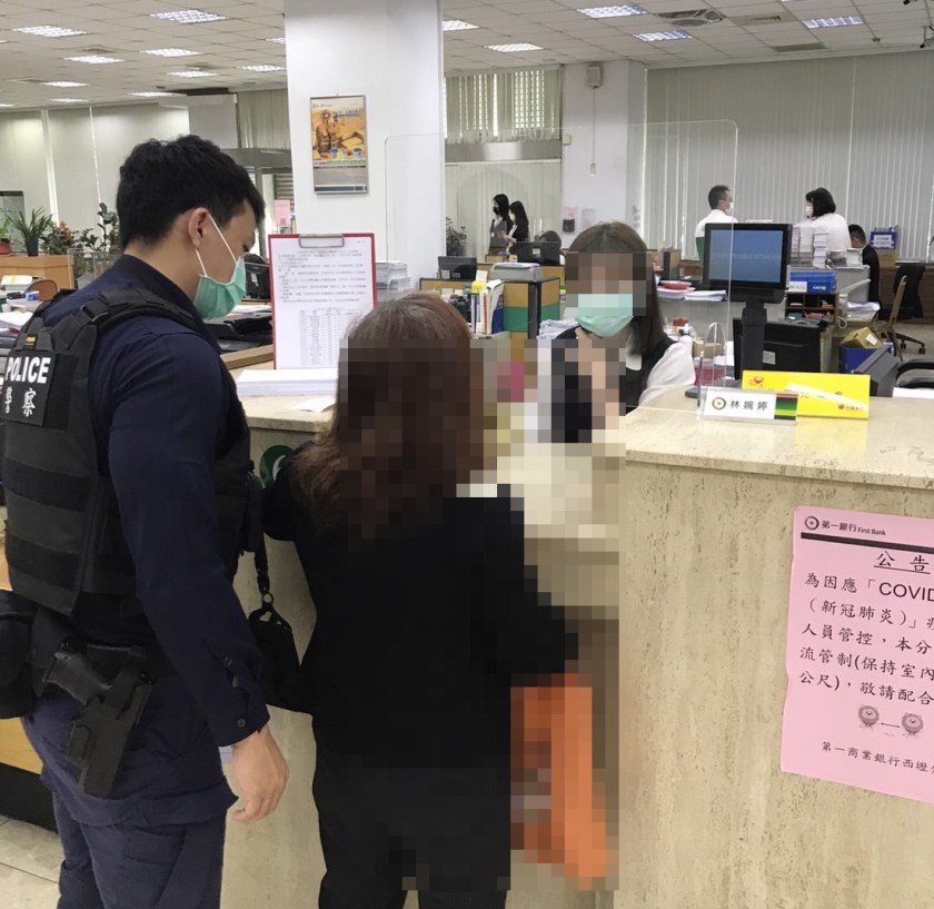 中壢分局興國派出所警員張友人、李守恩日前擔服10-12時巡邏勤務時接獲第一銀行西壢分行行員通報有民眾疑似遭詐騙,員警立即前往了解。