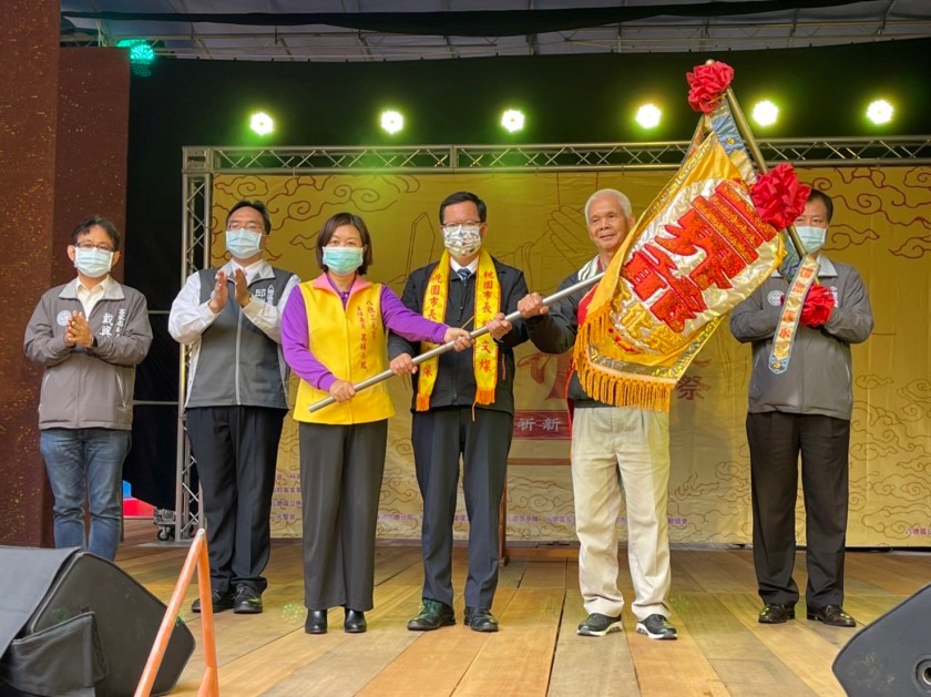 桃園市政府客家事務局委託八德區公所承辦之「2021桃園三界爺文化祭」系列活動於11月13日落幕,由桃園市長鄭文燦、客家事務局副局長戴興達、八德區長邱瑞朝等貴賓共同出席主持祈福三獻禮及令旗交接儀式,期藉由三界爺的庇佑,讓疫情退散,祈求身體安康。