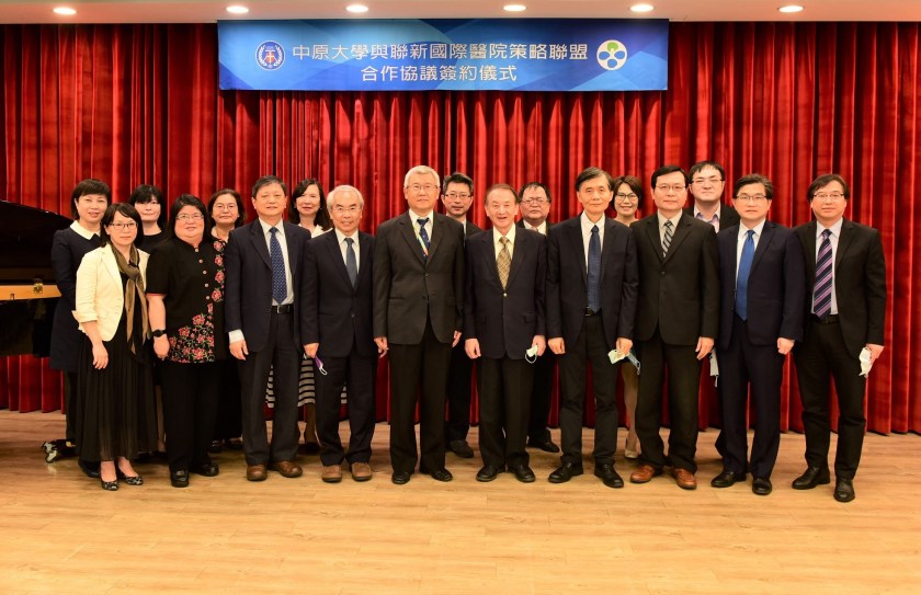 中原大學與聯新國際醫院締結新約,雙方主管與會合影,開啟學術、醫療雙聯合作新扉頁。