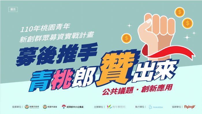 桃園市政府青年事務局「青年新創群眾募資實戰計畫」於11月開始起跑,本次甄選主題分為「創新應用」及「公共議題」二類,共選出6組公司或團隊,結合專業募資策略輔導團隊及知名大型募資平台FlyingV,提供募資專頁課程、策略規劃、輔導,並協助宣傳及完成上架募資平台。