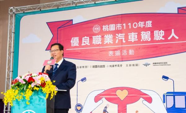 桃園市長鄭文燦23日下午於市府,出席「桃園市110年度優良職業駕駛人頒獎典禮」時表示,為鼓勵職業駕駛人致力服務桃園市內各類運輸服務,今(110)年優良駕駛的選拔,由桃園市7個運輸業的職業公(工)會提名推薦所屬會員,及個別駕駛人自行報名申請,且經市府成立評審委員會,從近萬名司機中,評選出93名優良駕駛人。本次表揚除頒發獎牌、獎狀及6,000元獎勵金外,並加發「優」字榮譽標誌貼紙,以慰勞優良職業駕駛人的努力;未來市府也會盡力讓交通運輸業提供良好服務之際,也能獲得最大的保障。
