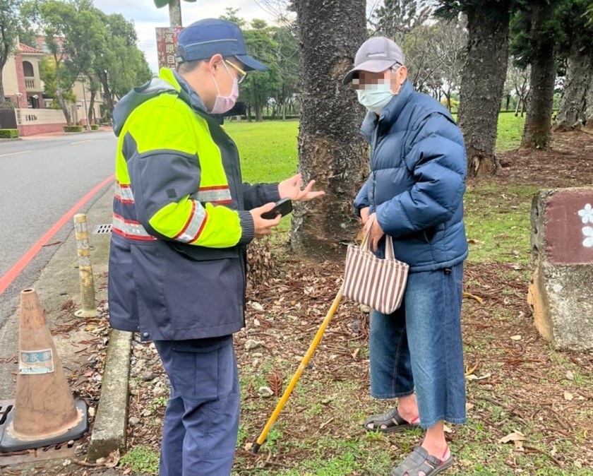 龍潭分局高平派出所警員卓光煜及林維紘等2員,於25日傍晚執行巡邏勤務,行經龍潭區渴望路時,突然發現有一名老翁杵著拐杖徬徨無助的獨自站在路旁的公園樹下,員警擔心該老翁,立即趨前關心老翁情形,只見其神情焦急且情緒激動的直稱「天都快黑了!我忘記回家的路了」,卻遲遲無法表達自己身分及住所,員警在現場先行安撫老翁情緒後,當時室外氣溫嚴寒,為防止意外發生,先將該名老翁攙扶上車並載返派出所,以確保安全。