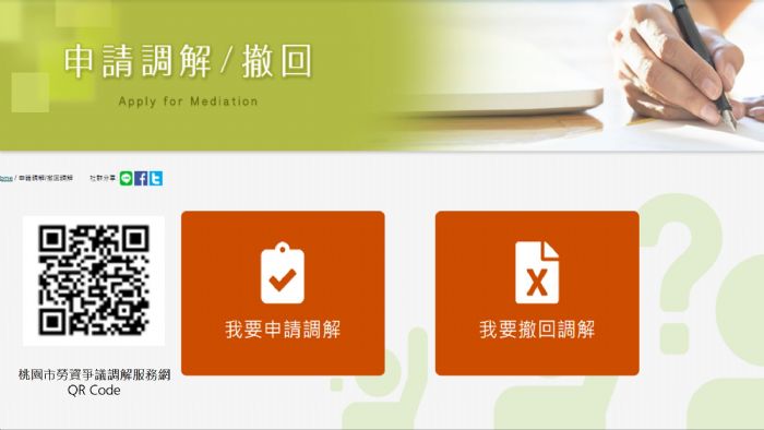 桃園市政府勞動局勞資爭議調解服務網:https://tycgdllrla.tycg.gov.tw/index.aspx
