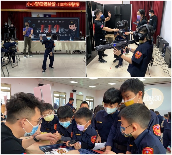 桃園市政府警察局婦幼警察隊與楊梅分局27日下午,共同舉辦110年小小警察體驗營「110未來警探」活動,今年規模有別於以往,是以「110未來」為主題,融入治安與交通等宣導議題,規劃各項闖關、解謎活動、密室逃脫遊戲,結合「VR實境模擬」虛擬射擊,讓參加的孩子們不僅穿上小小警察制服,更體驗員警帥氣的模樣以及平日出勤的緊張與未知感。