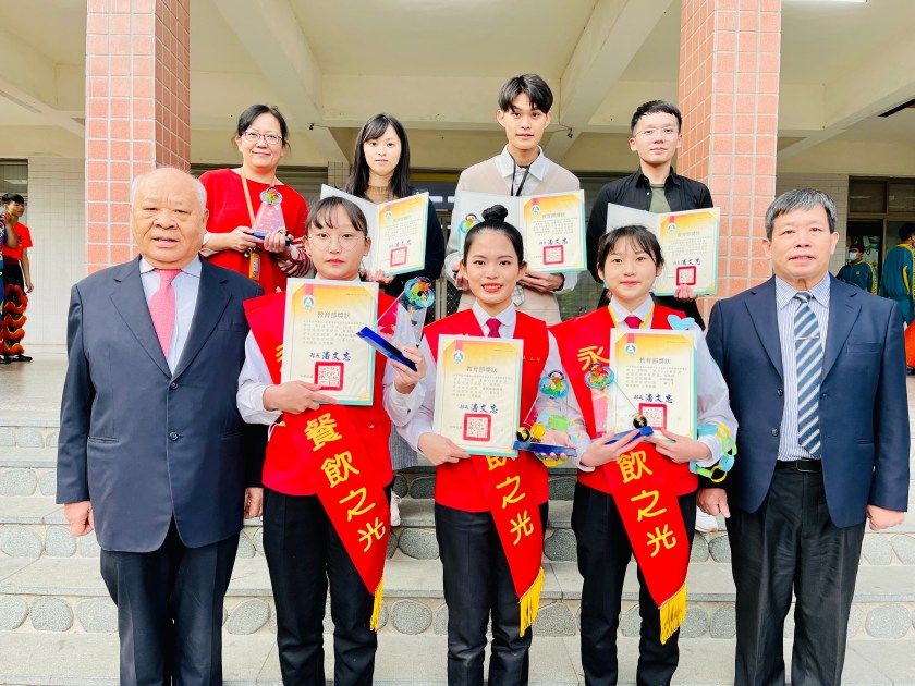 參加烘焙職種的曾郁娟及餐飲服務職種的王之妤皆榮獲「金手獎」,分別是全國第一及第三名,中餐烹飪職種的洪子媛則獲得優勝的佳績。這些同學能在眾多競爭者中脫穎而出,不僅為學校爭光,也為自己贏得未來升學時,擁有技優保送或甄審加分的機會,相當值得肯定!更令人感動的是在這些日子的培訓過程中,指導老師們的犧牲與奉獻,陪伴學生度過重重難關,以及同學們堅持到底、努力不懈的精神,終於獲得很棒的回饋。