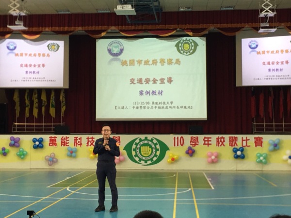 桃園市政府警察局中壢分局為提升莘莘學子交通安全意識,特別於8日前往萬能科技大學,針對大學生進行交通安全宣導,現場由中福派出所所長邱胤廷負責講授有關交通安全常識、常見的交通事故及防禦駕駛等交通安全內容。透過實際案例影片及生動活潑的宣導方式來吸引學生注意,並透過有獎徵答方式與學生互動,讓宣導效果更為生動。