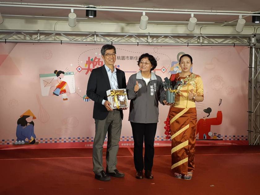 社會局長鄭貴華頒贈「創業利器組」給馬來西亞籍蔡南武與「飲料調製班」緬甸籍謝民嬌