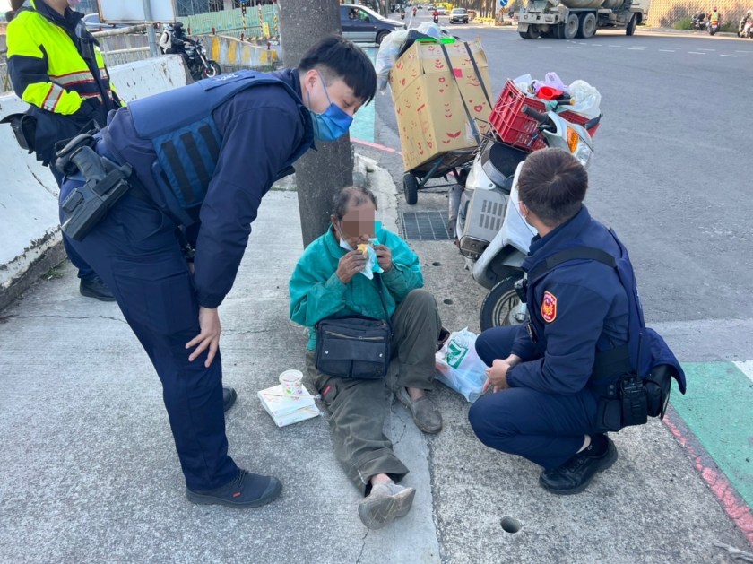 做資源回收的馮姓男子(71歲),因沒有吃東西導致血糖過低,騎車時不慎跌倒無力起身,所幸派出所員警巡邏經過發現,立即給予協助,獲得民眾讚許感謝。