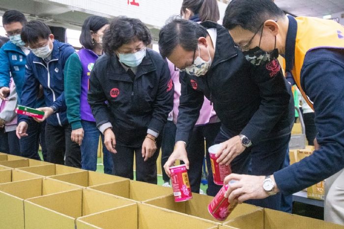 鄭市長今日與南崁高中同學們依序在物資箱內放入白米、麵條、沖泡麥片等,共同完成300箱物資裝箱,讓社會各個角落在寒冬中感受到溫暖。鄭市長勉勵同學,付出時手心是向下,但在關懷別人的同時,會得到難以衡量的滿足,感受到生命的價值,希望同學們在服務的過程中,成為善的循環,並體會到感恩惜福、共享惜食的精神。