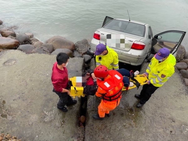 海巡署北部分署第八岸巡隊永安安檢所執勤人員,21日上午9時許運用港區監視系統,發現新屋區永安漁港南堤有車輛墜落於消波塊上,立即通報第三巡防區指揮部,並攜帶車窗擊破器及救生救難装備投入救援。