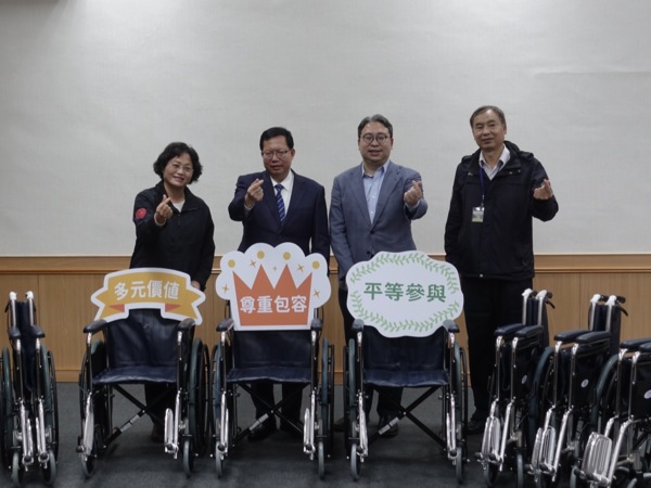 桃園市長鄭文燦21日下午在市府社會局長鄭貴華、桃園區長陳玉明陪同下,前往桃園市綜合會議廳,出席「黃世杰立法委員輪椅捐贈儀式」。鄭市長表示,感謝黃世杰立委秉持「取之於社會、用之於社會」的精神,與觀音區鄉親共同捐贈65台輪椅,給予桃園的弱勢者更大的支持。鄭市長指出,根據統計借用需求最高的輔具為「輪椅」,目前桃園二手輔具資源站的輪椅庫存有所不足,因此今日所捐贈的輪椅如同及時雨,可以協助滿足身障朋友的借用需求,未來市府也將持續努力,讓輔具可以達到充足數量,穩定借用的週轉率。