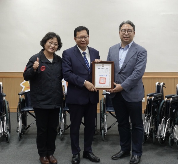 立法委員黃世杰表示,受到觀音區鄉親的托付,共同捐贈65台輪椅予市府社會局,期盼輔具資源可以獲得最有效的利用,讓所有需要幫助的桃園市民,都可獲得更妥善的照顧。