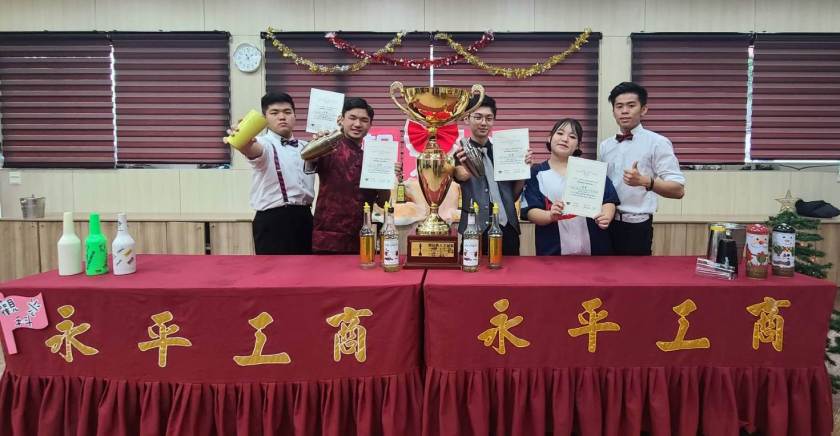 值得一提的是,來自馬來西亞,專程前來永平工商就讀僑生建教班的僑生同學鄭文添,加入永平工商調酒社,利用課餘時間學習專業花式調酒技術,中文不甚流利的他在陌生環境下需克服語言障礙,把握時間努力學習,最終不負眾望奪得2021年度新人王三年級組中的第四名!