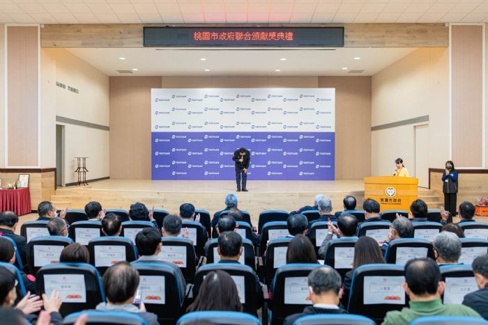 桃園市長鄭文燦29日上午於市府,出席「桃園市政府聯合頒獻獎典禮」,頒授傑出/榮譽市民獎,並表揚績優機關與人員,共計頒授69個獎項;同時接受市府各機關呈獻各類獎項共96座。鄭市長表示,今(110)年5月受疫情影響,市府市政會議配合人流數量管制而縮減規模,近半年來各項頒獻獎儀式亦暫緩舉行,近期隨著疫情收斂,盼藉由慎重的典禮,向所有受獎者表達深深地感謝。鄭市長也感謝市府團隊在疫情期間仍堅守崗位,桃園各項市政服務均未因防疫工作而打折扣,進步的腳步也不曾停下,讓桃園持續向前邁進。