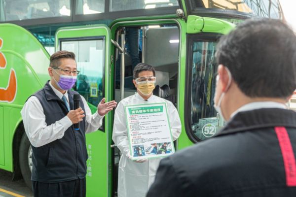 鄭文燦表示,因應中央防疫規範,禁止須進行居家檢疫的入境旅客搭乘大眾運輸工具,必須搭乘防疫車輛前往集中檢疫所或防疫旅館執行居家檢疫政策,載送過程需要非常縝密的安排及高強度的防護,因此,特別感謝防疫車隊在台灣國境防疫政策上持續堅守崗位,扮演相當重要的角色,且在防疫車隊嚴謹的管制措施之下,疫情間也無發生因載送入境旅客而確診的事件。