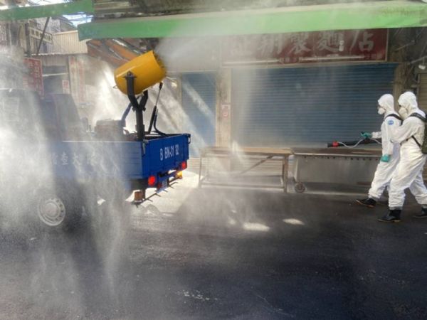 針對有確診者於日前前往忠貞市場擺攤,桃園市政府防疫消毒大隊與三三化兵群也於今(4)日下午出動54人及7部消毒車前往市場進行大規模消毒,另也針對市場周邊10個里進行擴大消毒。