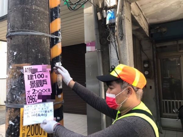 升格後的桃園市房地產業蓬勃發展,業者為節省銷售成本便宜行事,常任意於電線桿、燈桿、交通號誌牌(桿)、電箱等公共設施上張貼違規小廣告,已嚴重影響市容環境及交通安全。環保局為消除違規小廣告,查獲房仲業者任意張貼小廣告違規事證屬實者,除依電信法第8條第3項規定停話,也將移請地政局依據不動產經紀業管理條例,裁罰6萬元以上到30萬元以下罰鍰。12月份已經查獲一件,相關裁罰程序目前進行中。
