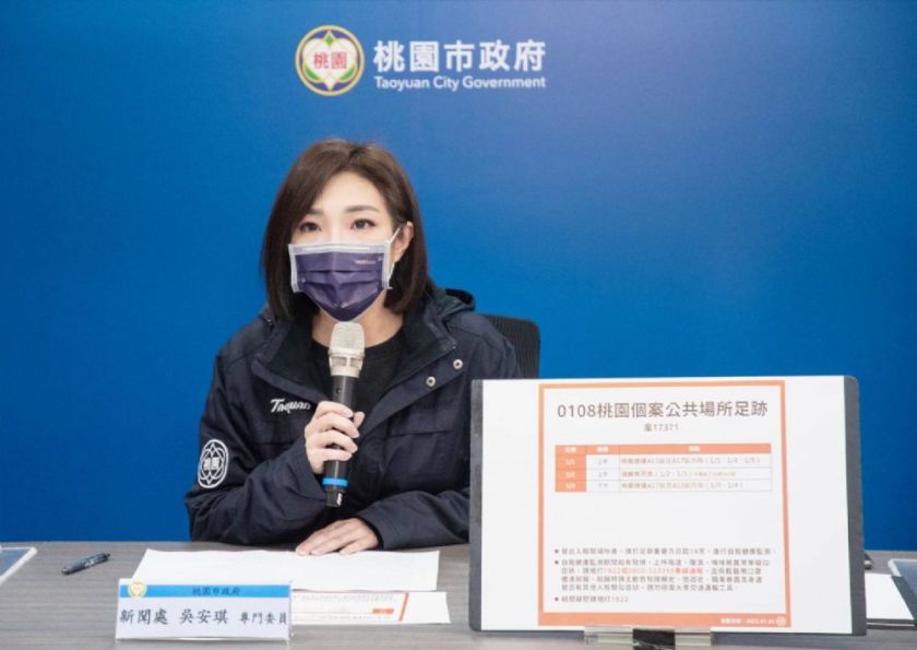 中央流行疫情指揮中心8日公布桃園新增1例本土、3例境外,桃園市政府於下午召開疫情說明記者會。新聞處專委吳安琪表示,桃園本土個案為案17414是位50歲女性,在機場工作的保全,境外移入則有3例,年齡為40多歲至50歲。吳專委也公布桃園確診個案17371公共場所足跡,包括1月1日、1月4日、1月5日上午搭乘桃園機場捷運A13站往A17站方向;1月2日、1月3日上午在中壢區三光路162號瑞麟美而美;1月3日、1日4日下午搭乘桃園機場捷運A17站往A13站方向。曾出入相關場所者,請於足跡重疊次日起14天,進行自我健康監測,期間如有發燒、上呼吸道、腹瀉、嗅味覺異常等疑似症狀,請撥打1922或0800-033355專線通報,並請佩戴口罩盡速就醫,就醫時請主動告知接觸史、旅遊史、職業及身邊是否有其他人有類似症狀,並請勿搭乘大眾交通運輸工具。