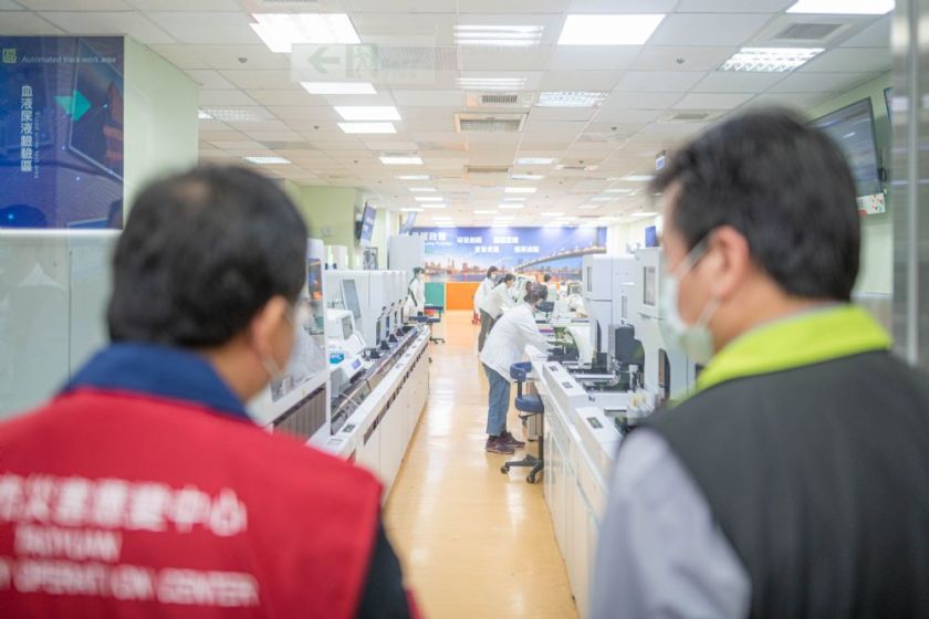 桃園市長鄭文燦(10)日上午前往桃園區敏盛綜合醫院,視察檢驗中心並感謝醫檢人員連夜的辛勞。鄭市長表示,醫檢團隊在防疫工作中扮演著不可或缺的角色,尤其兵貴神速,防疫要掌握時效性,透過即時疫調、即時採檢,才能確定病毒傳播鏈。而檢驗團隊在前端完成採檢後,後端還須確認採檢結果,經常需要連夜作業,相當辛勞,感謝敏盛綜合醫院支援本次機場與金嗓歌友會採檢專案,以及中路運動公園社區採檢站,自1月7日起至昨(9)日三天,敏盛綜合醫院團隊採檢量累計已將近3,500人,幾乎都是當天知道結果且準確度高。鄭市長指出,防疫需要多方面的努力,醫療人員不只是做醫學治療及健康照顧,在採檢及疫苗接種也非常用心,感謝醫療人員全力投入防疫工作,也讓所有人看見醫檢團隊的價值。