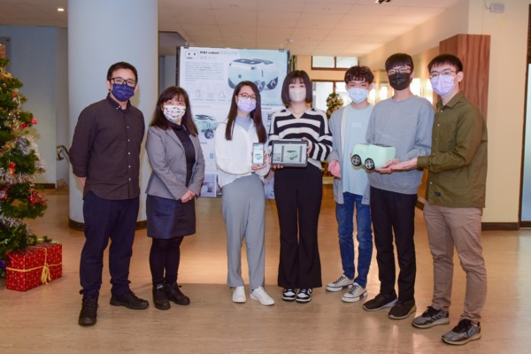 目前正值春節返鄉高峰,社會擔憂「防疫旅館」可能成為防疫破口。為了協助優化隔離管理,中原大學電機系學生開發一款「防疫自走車HAI Robot」,並與商設系產品設計組學生合作設計可愛療癒的外型,運用AloT技術降低防疫旅館風險,贏得全國微控制器應用大賽「盛群盃」金牌肯定!中原大學學生關心時事並發揮所學,再次展現中原師生跨域合作、學用合一的教學成效。