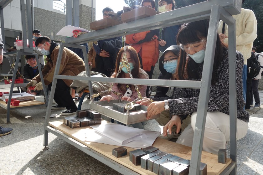 土木二乙李星蓉興奮地表示,要在比賽一開始先定好三次載重,我們這組猶豫超久,因為希望每一次加載的機會都不要浪費,又想要一次多一點。後來我們製作的桿件能夠承受55個鐵塊,相當於35.75公斤,超有成就感!雖然桿件的重量(0.032公斤)相對其他組重了一點,以至於效率比不高,但看到小小的桿件能撐住很大的重量就覺得不可思議!」