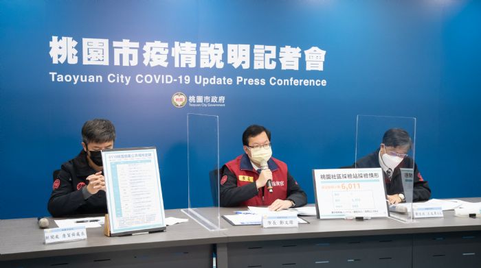 鄭文燦說明,桃園市居家隔離人數計1,024人,後送至集中檢疫所人數達1,100人以上,確保檢疫過程避免傳播風險,也希望所有民眾配合擴大採檢、居隔的政策。當前除東興國中及某電子廠設置專案採檢站外,市府設置10個社區臨時採檢站,其中17日所開設的大園市民活動中心採檢站,鄰接桃園國際機場,考量大園部分居民在機場上班,因此開設社區採檢站以進行健康監測。中壢高商及東興國中也採檢2,965位師生,其餘師生市府會盡快完成採檢。另外,東安國中、平鎮幼兒園紹豐分班、私立長青幼兒園因學生採檢結果陰性,明日起復課。