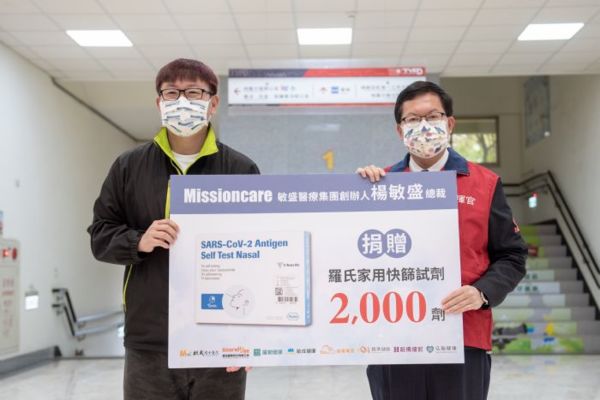 在敏盛醫療集團總裁楊敏盛捐贈快篩試劑典禮上,鄭文燦表示,敏盛醫療體系近年擴大醫療服務項目,成為多元化的全能照護體系,守護桃園市民健康。鄭市長感謝敏盛集團在疫情期間,支援市府專案採檢、專案接種等各項防疫任務,也感謝總裁楊敏盛先生在社會公益上的不落人後,與市府共同守護市民健康。