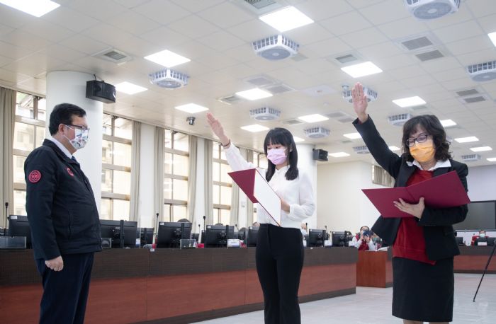 桃園市長鄭文燦(19)日上午於市政會議,主持新任青年事務局局長陳冠穎及人事處處長林妙貞聯合宣誓典禮。鄭市長表示,原青年事務局局長顏蔚慈於去(110)年離職返鄉參選公職,新任青年事務局局長由陳冠穎接任;原人事處處長黃新雛調任總統府人事處處長,遺缺由前內政部人事處處長林妙貞接任;原政風處處長曾慶瑞屆齡退休,遺缺由法務部調任前台南市政府政風處處長許志雲接任,期勉3位新任局處長領導團隊讓桃園更好。