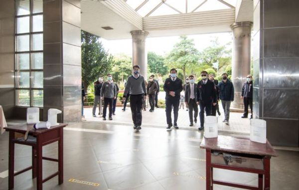 林局長也提醒,因應本次學測加強防疫措施,所有考生出入各考場均應全程佩戴口罩,並出示身分識別證件與量測體溫方可出入試場。同時,各考場採取單一動線,除身心障礙、重大傷病或突發傷病考生得申請陪考服務外,不開放親友陪考;另外中午用餐時間,也呼籲各考生待在原試場用餐,盡量勿返回休息區,降低防疫風險。包括市府教育局長林明裕、環保局長呂理德、環境清潔稽查大隊長羅文林、桃園區長陳玉明、武陵高中校長林煥周均一同進行視察。