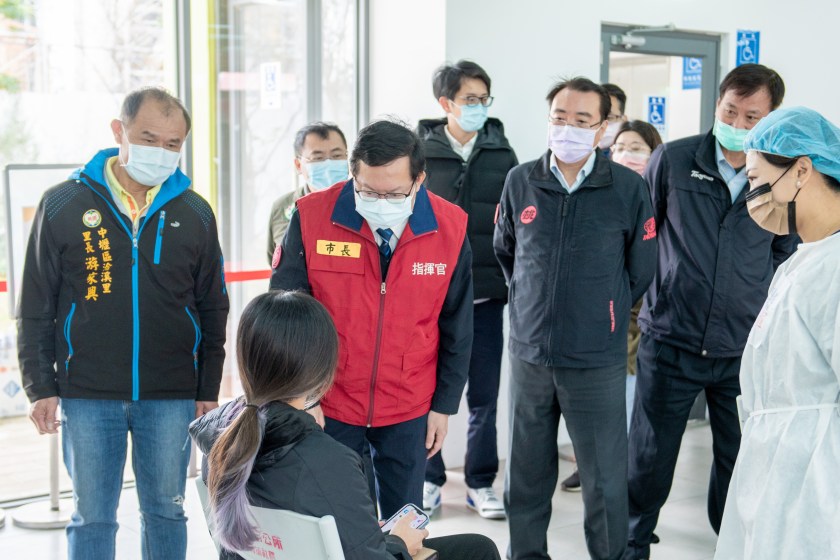 桃園市長鄭文燦20日上午前往中壢區,視察青埔市民活動中心疫苗接種站運作情形。鄭市長表示,桃園社區接種站以「單日接種莫德納疫苗、雙日接種BNT疫苗」的方式進行,目前莫德納疫苗預約率超過9成,BNT疫苗預約率則約3成左右,市府開放BNT疫苗免預約服務,無論是要接種第一、二劑,或已完整接種疫苗屆滿12週欲接種第三劑追加劑者,均可前往社區接種站接種。鄭市長也呼籲民眾應於春節前盡速接種疫苗,提升保護力,並盡量減少聚餐、聚會等社交活動,以確保春節期間的防疫安全。