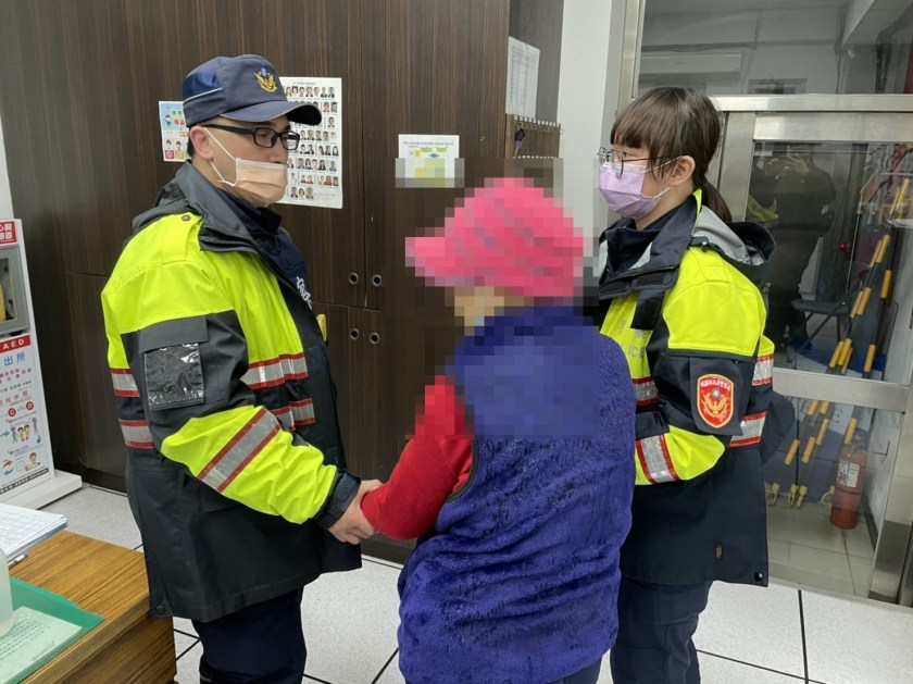 22日凌晨一名91歲趙姓老婦人因睡不著,外出散步,不料因戶外風雨交加,一時認不清回家的路而迷航,員警考量深夜氣溫驟降在得知老婦確切住址後立即以巡邏車將老婦安全送返溫暖的家中,結束這場風雨中的迷航記。老婦兒子(姓汪,56歲) 對警方熱心協助感激不盡,並表示老婦因年事已高,記憶力衰退,常有睡眠狀況不佳至深夜未眠的情形,就會外出至離家300公尺處的龍和公園散步,以幫助入睡。22日因天候不佳,風雨太大,老婦一時迷途,所幸遇到警方熱心協助,才能讓高齡9旬老母親平安順利返家,避免流落街頭,有家歸不得。