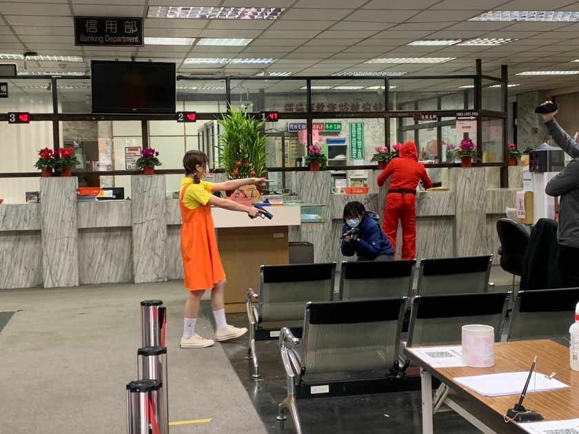 2名員警角色扮演經典電視劇「魷魚遊戲」充當歹徒持槍闖入行搶