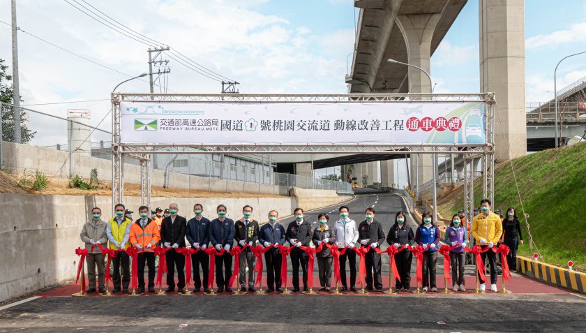 交通部政務次長陳彥伯表示,國道1號桃園交流道動線改善工程別具意義,其困難之處在於匝道之外的聯絡道路規劃,期間感謝民意代表的督促及預算上的支持、市府團隊的協助及在地里民的包容,最後也要感謝施工團隊在疫情期間持續如期如質的趕工。