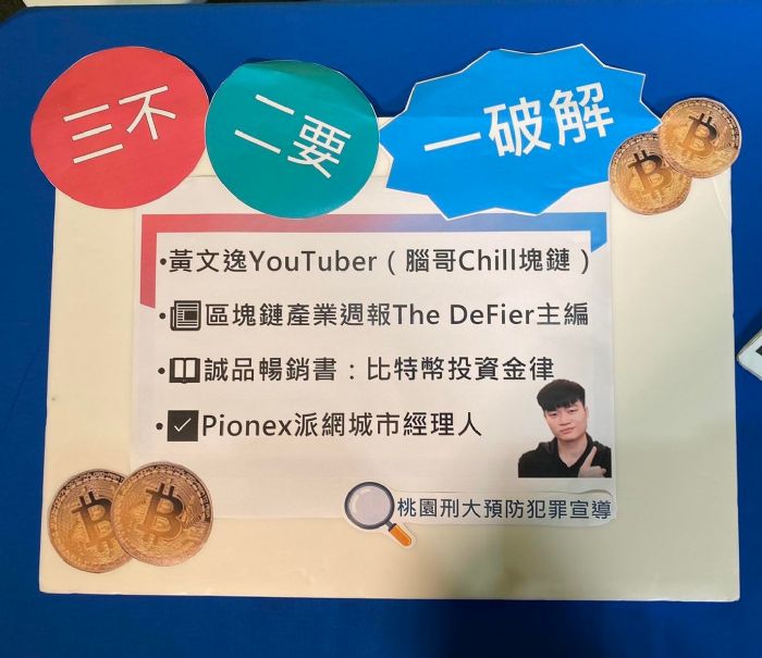 有鑑於此,桃園市政府警察局刑事警察大隊特別邀請「專研虛擬貨幣領域的網路紅人:腦哥(chill區塊鍊)」,其同時也有出版相關著作及業界實務經驗,一起在官方臉書(桃園刑大預防犯罪宣導)平臺進行直播,叮嚀民眾投資虛擬貨幣時應該注意的事項,以及如何拆解、辨別虛擬貨幣投資詐騙,並搭配有獎徵答活動,贈送各種以過年的喜氣年味命名之小禮物,如點盞光明燈(前程似錦露營燈)、財管滾滾零錢包;該場直播以專業角度切入,輔以大眾化、輕鬆活潑的方式解說,讓民眾理解並知悉如何防範是類詐騙,也在題材新穎並頗富創意的宣導手法下,吸引不少民眾上網觀看,其間宣導影片也有破萬人次觀賞。